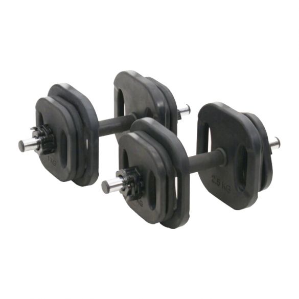 Dieses Hantelset besteht aus 12 Scheiben, die Sie selbst zusammenstellen können.