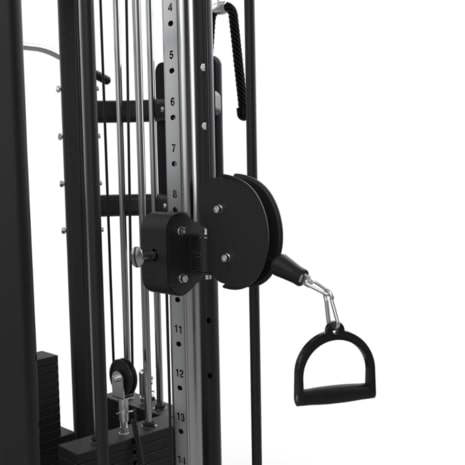 Standardmäßig wird dieses Gerät mit diversem Zubehör geliefert, darunter Lat-Zugstangen, Trizeps-Seile, Doppelgriffe, ein einzelner Gurt und eine untere Druckstange, sodass jeder Benutzer sein Training an seine persönlichen Vorlieben und Trainingsziele anpassen kann.