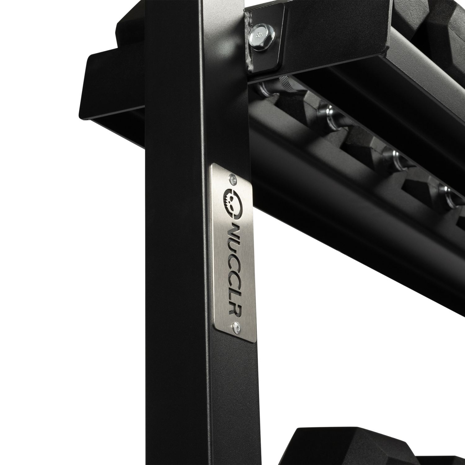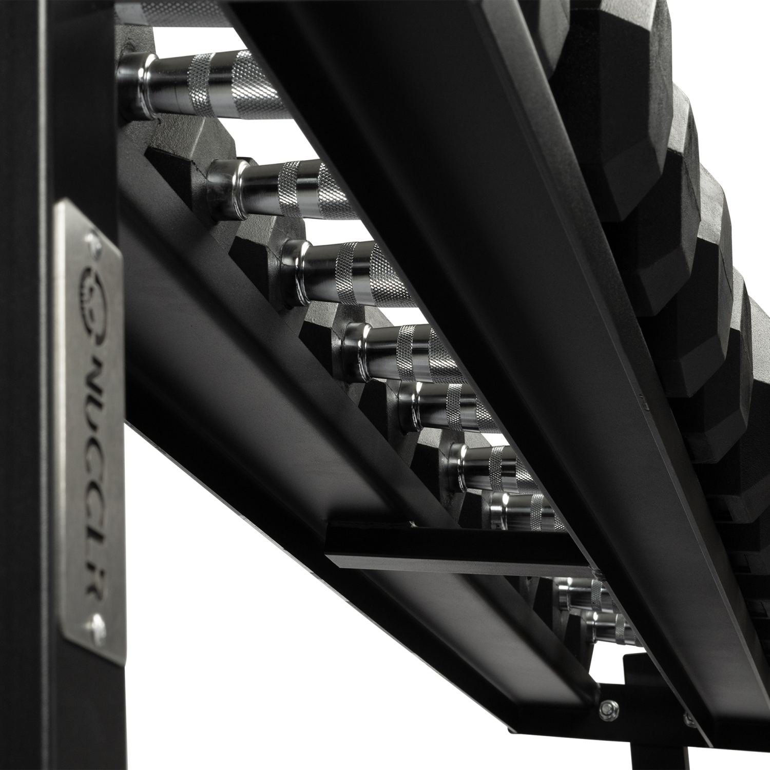 Mit dem NUCCLR Dumbbellrack 2 Tiers optimieren Sie Ihren verfügbaren Platz und ergänzen Ihre Fitnessumgebung um eine hochwertige und praktische Lösung.