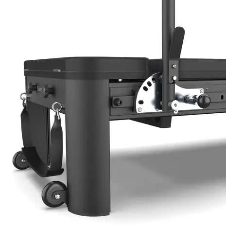 Neben den funktionalen Vorteilen bietet dieser Reformer auch praktische Lösungen. Dank der Transportrollen und des Space-Saver-Systems können Sie den PTX8000 mühelos vertikal verstauen. Das mitgelieferte Zubehör wie ein Jumpboard, eine Box, verstellbare Gurte und Griffe runden das Set ab und sorgen dafür, dass Sie sofort loslegen können.