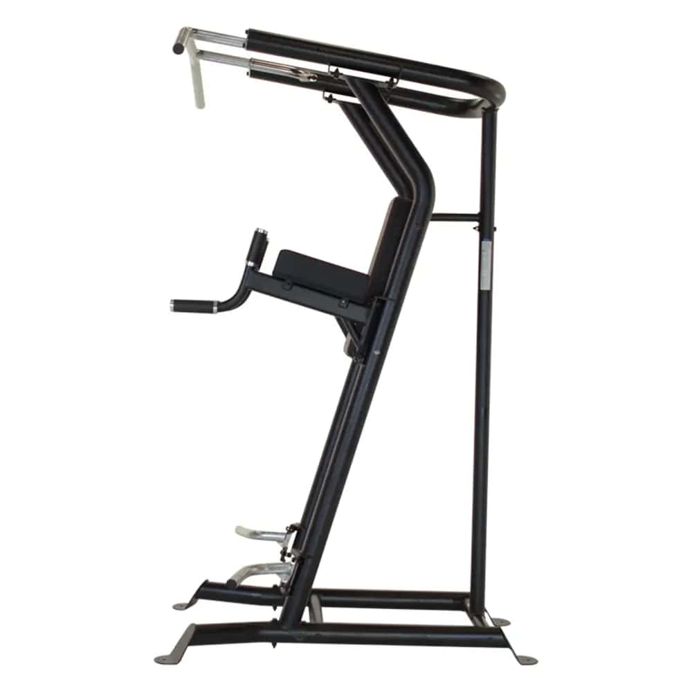 Die Konstruktion besteht aus schwerem Rundstahl und ist mit einer dauerhaften elektrostatischen Pulverbeschichtung versehen. Dadurch fühlt sich der Turm solide an und bleibt auch bei intensiver Nutzung über Jahre hinweg stabil. Die extra großen Stangen, kommerziellen Griffe und hochwertigen Polster sorgen für optimalen Komfort, auch bei intensiven Trainingseinheiten. Die Rücken- und Armpolster sind aus geschlossenzelligem Schaumstoff gefertigt und mit doppelt vernähtem Naugahyde ummantelt, was für angenehmen Halt und lange Lebensdauer sorgt.