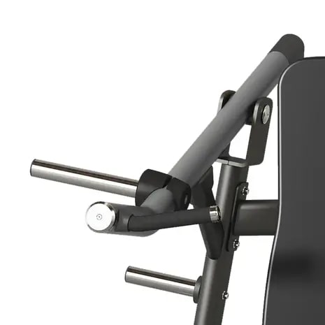 Die robuste Konstruktion besteht aus ovalen und flachen Stahlrohren, die mit einer doppelten kratzfesten Pulverbeschichtung versehen sind, die die Maschine vor Verschleiß und Korrosion schützt. Trotz der starken Konstruktion bleibt das Gerät mit Abmessungen von 1315 x 1480 x 1435 mm kompakt und passt somit effizient in jeden professionellen Trainingsraum.